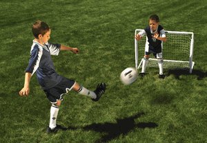 Seemingly a very nice set comprised of a ball, a pump, and a folding goal; all of which fit nicely into the accompanying carrying case. Unfortunately, the materials of construction are so cheap that my 4 yr old son broke a corner within 10 minutes of play; rendering the goal useless!