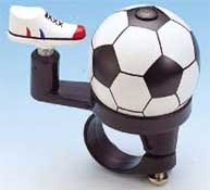 Soccer ball bell. Ringer provides a hit everytime. Just push down on the soccer sneaker and release and the foot kicks the bell and it rings. Perfect gift for that soccer player. Be safe and have a BALL! 360 degree pivoting ringer for easy use.